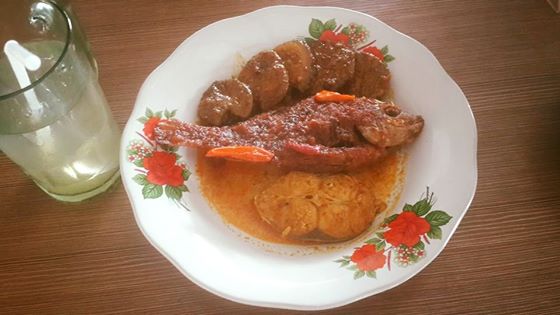 Makan siang ala Melayu kali ini dengan berbagai macam bahan yang menambah selera ada asam pedas, ikan goreng sambal dan semur jengkol serta sayur keladi.